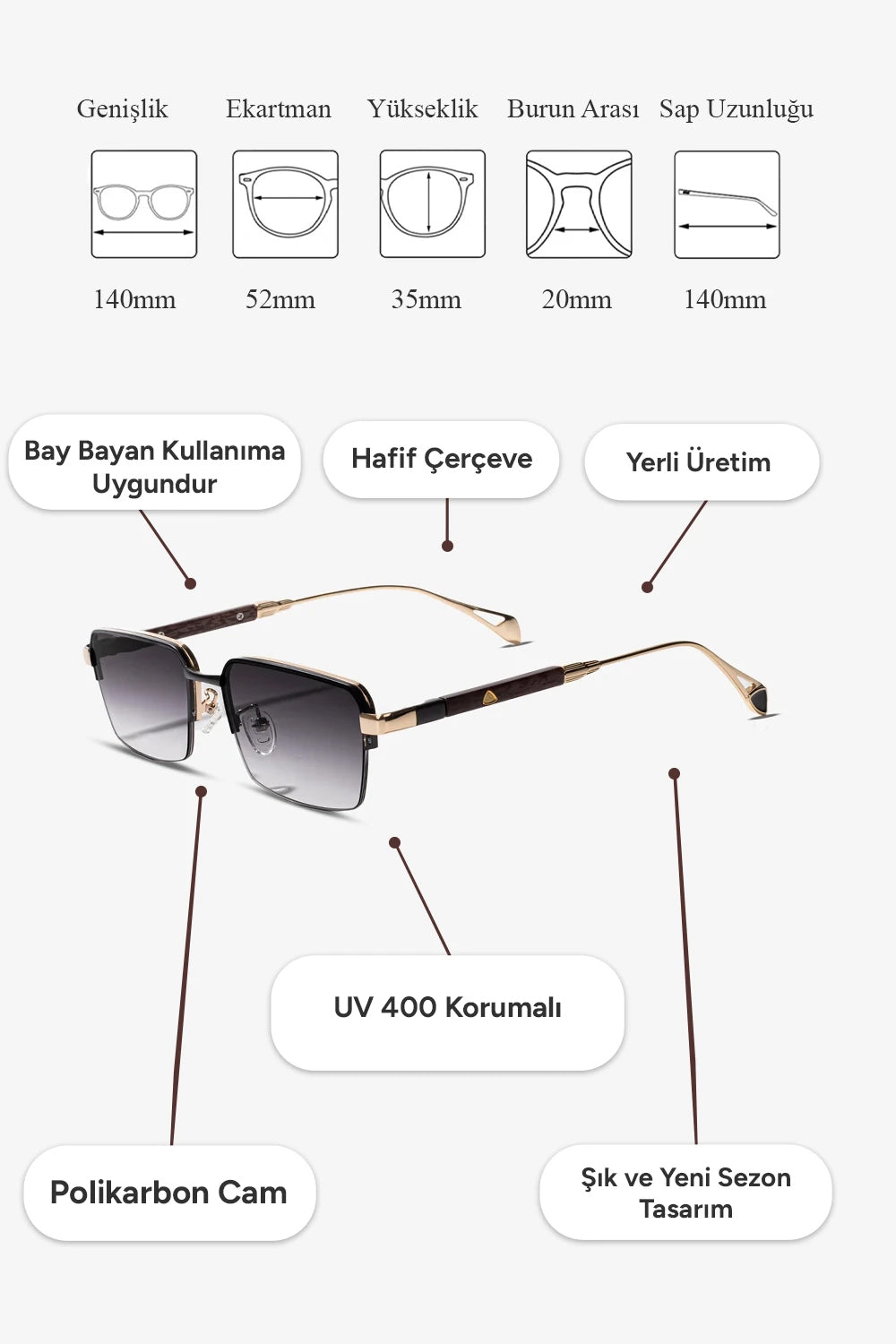 ✅ Tam Koruma: UV400 koruması sayesinde gözlerinizi zararlı UVA ve UVB ışınlarından maksimum seviyede korur. Güneşin zararlı etkilerini engelleyerek net ve konforlu bir görüş sunar.