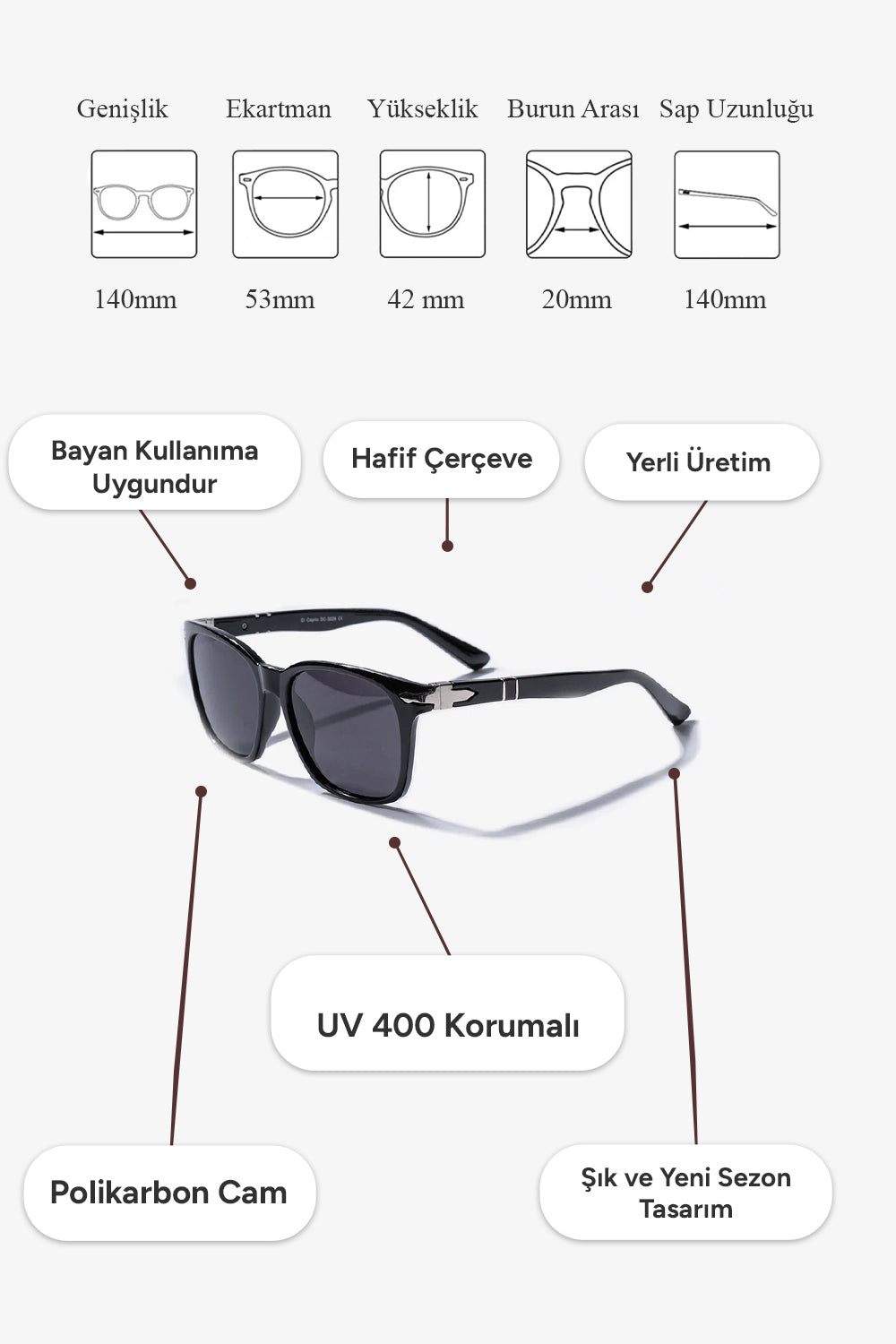 ✔ Tüm güneş gözlüklerimiz optikçilerde cam değişimine uygundur.